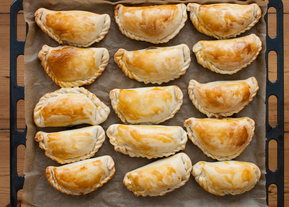 Colocar una cucharada del relleno en cada tapa y dar forma a las empanadas. Cerrar y colocar en una placa para horno previamente aceitada. Hornear por 20 minutos o hasta dorar.