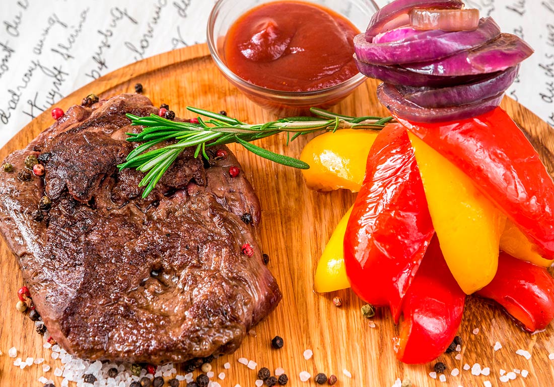 Bifes con cebollas y morrones