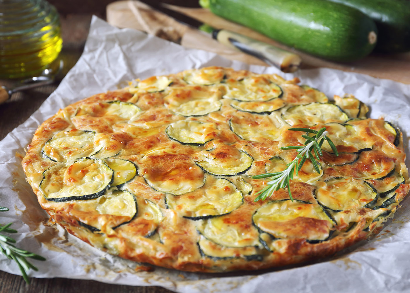 Tarta de zucchini y cebolla caramelizada