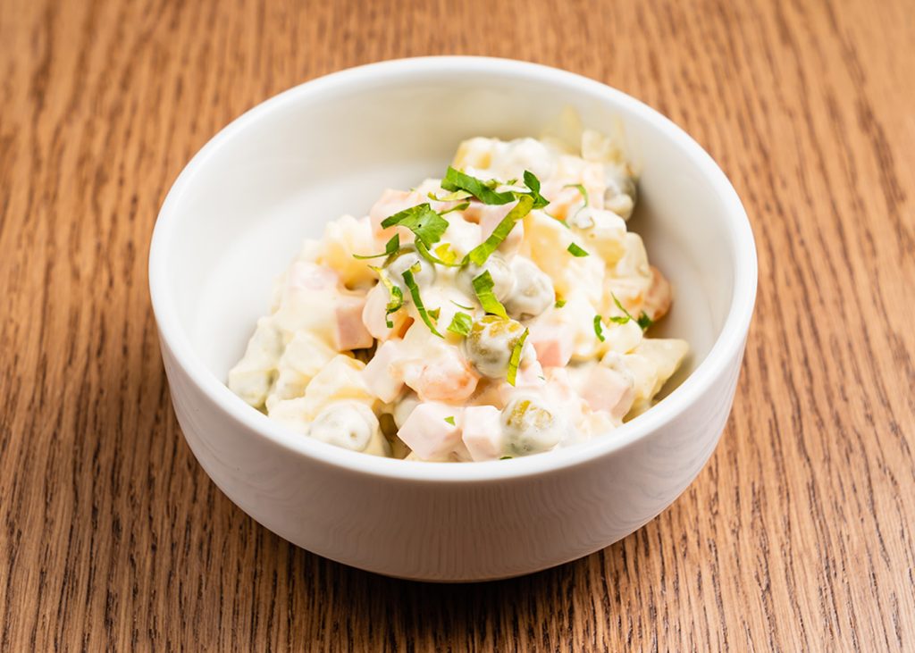 Rallar una papa de forma fina e incorporar a la preparación, removiendo por un minuto. Incorporar las latas de atún y la pulpa de tomate, mezclando de forma constante. Condimentar todo con Pimienta Blanca molida y Condimento Verde Sin Sal.